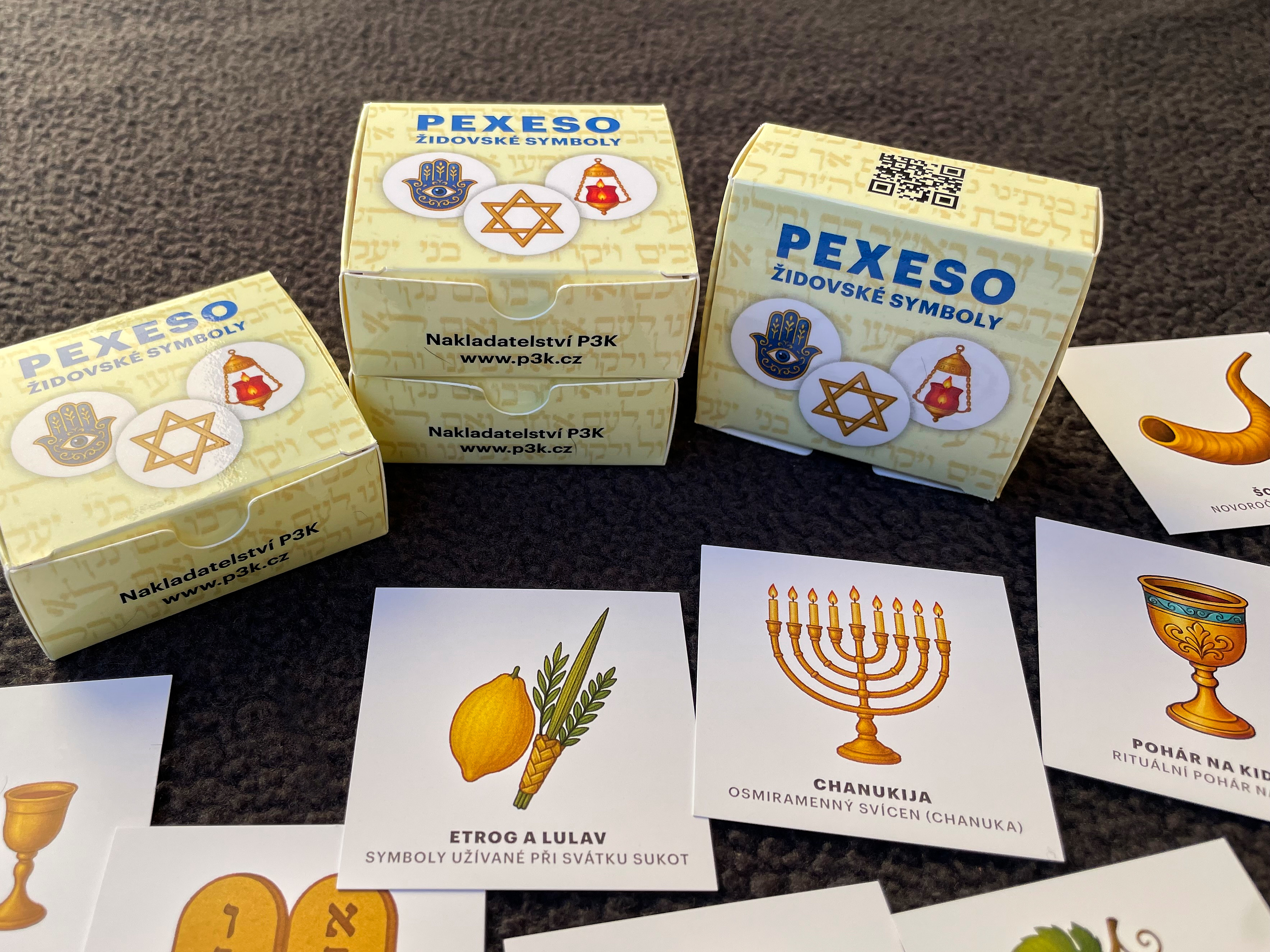 Pexeso zahrnuje 32 vybraných židovských symbolů. Obrázky jsou doplněny velmi stručným popisem.